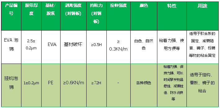 分類:按材質(zhì)分EVA和IXPE、PE三種;按持粘時(shí)間分普通和掛重級(jí)別二中;還有專門用于汽車裝潢用的汽車泡棉;